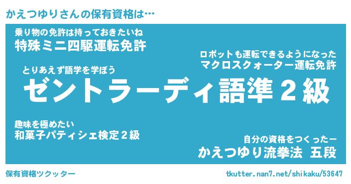 | ファンタジー風あだ名 | 『カエフェル』『エターナルカエツユリー』 |