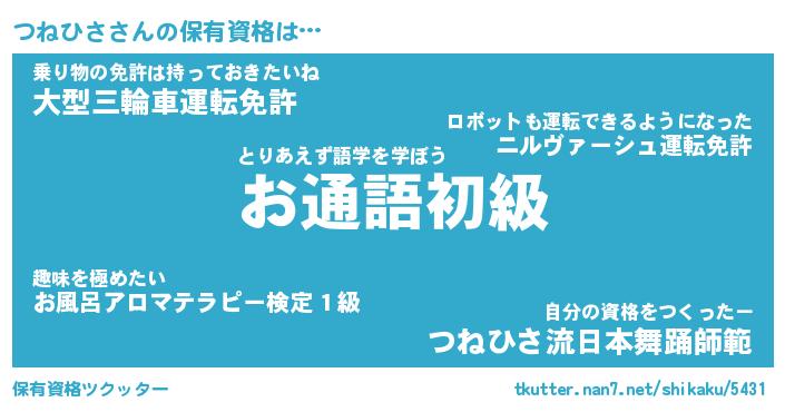 つねひささんの保有資格は… とりあえず語学を学ぼう『お通語初級』乗り物の免許は持っておきたいね『大型三輪車運転免許』自分の資格をつくったー『つねひさ流日本舞踊師範』 ツクッター #保有資格ツクッター http://tkutter.nan7.net/shikaku/5431/