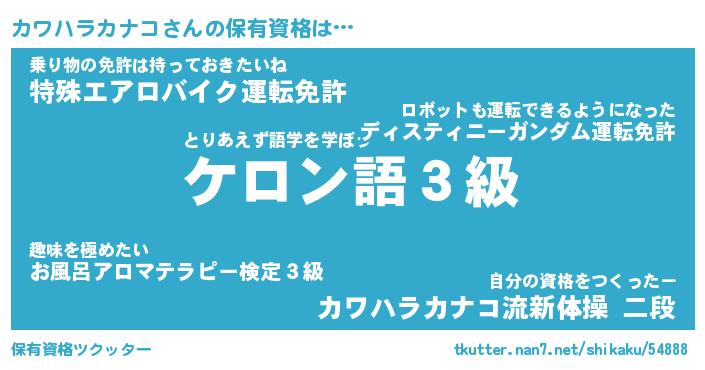 | 伝説のあだ名 | 『伝説の傭兵カワハラカナコ』 |