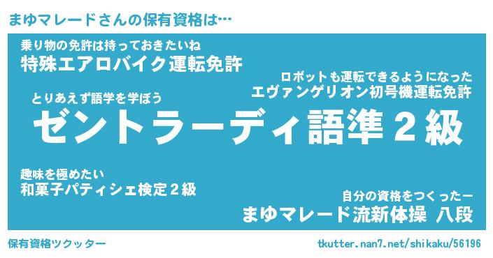 | 伝説のあだ名 | 『不死鳥のスナイパーまゆマレード』 |