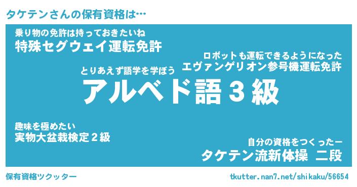 | ヒーロー風カッコイイあだ名 | 『スーパータケテン』『天弓騎士タケ』 |