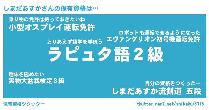 | ツイッター | しまだあすかさんのツイッターID『dendenmushi_star』 |