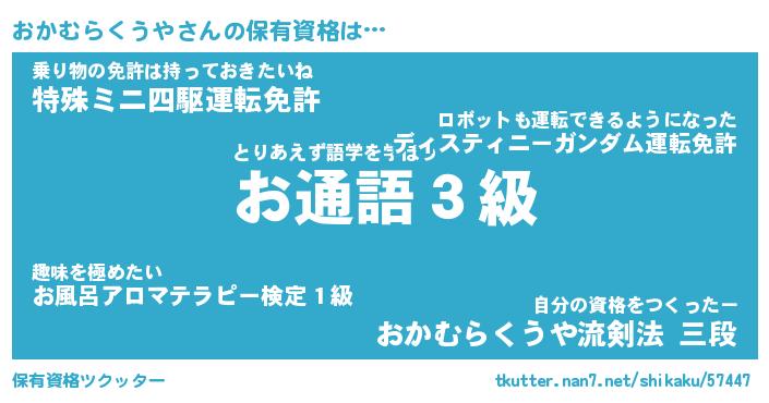 | 伝説のあだ名 | 『伝説の傭兵おかむらくうや』 |