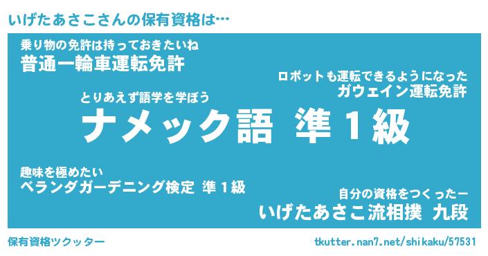 | ヘコむあだ名 | 『いげもー』『つくし』『いげぷりん』 |