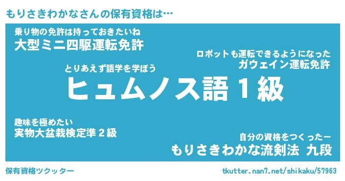 | ツイッター | もりさきわかなさんのツイッターID『namakemono_man』 |