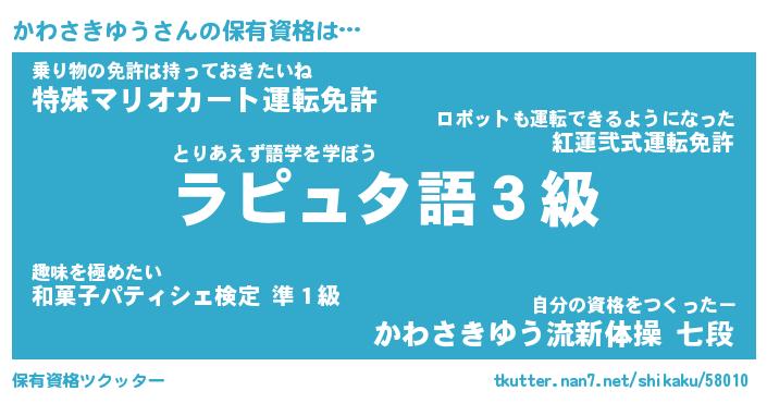 | ヒーロー風カッコイイあだ名 | 『スーパーカワサキユウ』『炎刃騎士カワ』 |