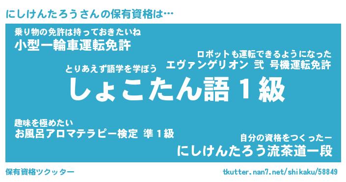 | 伝説のあだ名 | 『封印されし竜騎士にしけんたろう』 |