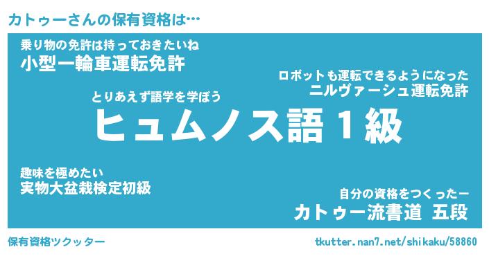 | ヒーロー風カッコイイあだ名 | 『スーパーカトゥー』『天弓騎士カト』 |