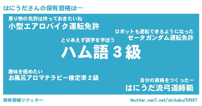 | 意味不明あだ名 | 『ペロリンはにうだ』『永久保存はにうだ』 |