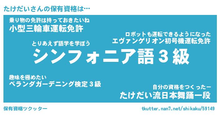 | ファンタジー風あだ名 | 『タケフェル』『エターナルタケダイー』 |