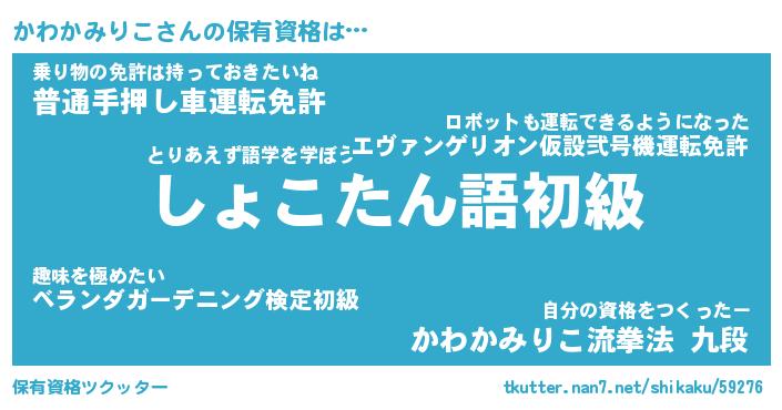 | 伝説のあだ名 | 『封印されしスナイパーかわかみりこ』 |