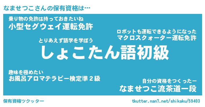 | ファンタジー風あだ名 | 『ナマフェル』『エターナルナマセツコー』 |