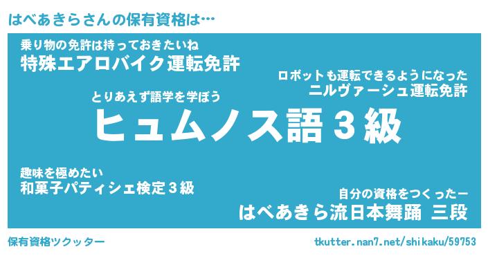 | 肩書あだ名 | 『はべあきら店長』『はべあきら大統領』 |