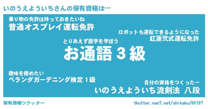 | 伝説のあだ名 | 『不死鳥の傭兵いのうえよういち』 |