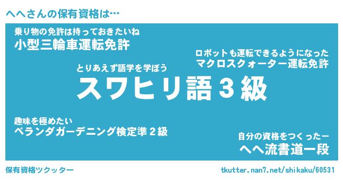 | 伝説のあだ名 | 『伝説の傭兵へへ』『最古の陰陽師へへ』 |