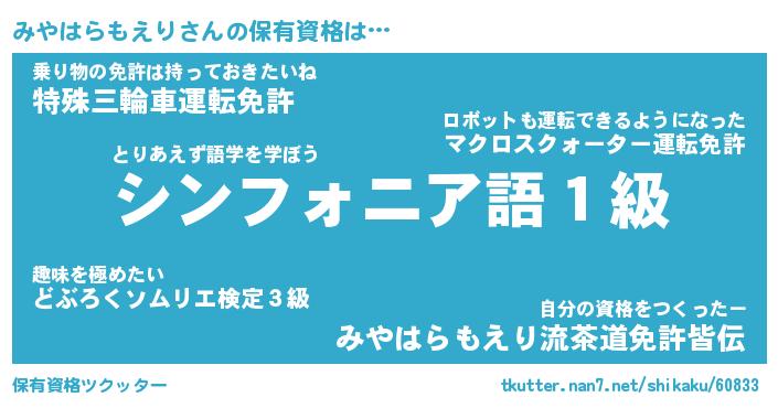 | 伝説のあだ名 | 『伝説の竜騎士みやはらもえり』 |