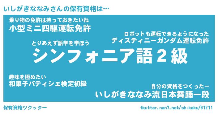 | 胡散臭い通販商品みたいなあだ名 | 『必ず成功するブレスレット…その名も「いしがきななみ」』 |