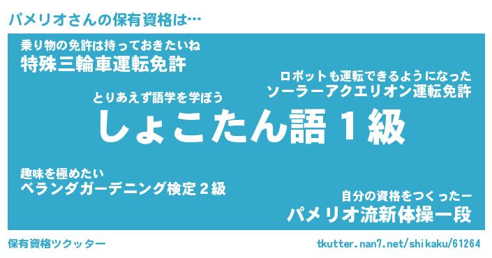 | ヒーロー風カッコイイあだ名 | 『スーパーパメリオ』『銀牙騎士パメ』 |