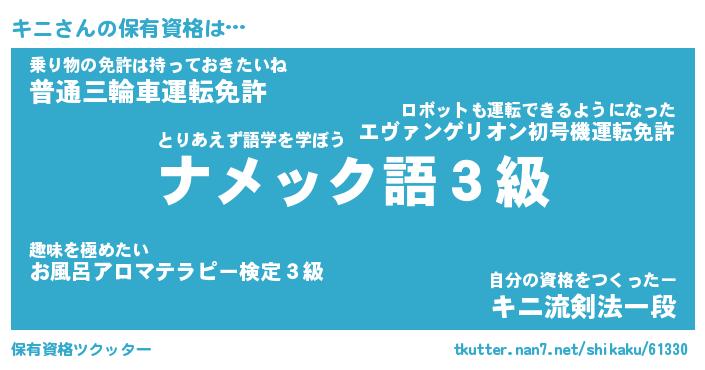 | ファンタジー風あだ名 | 『キニフェル』『エターナルキニー』 |