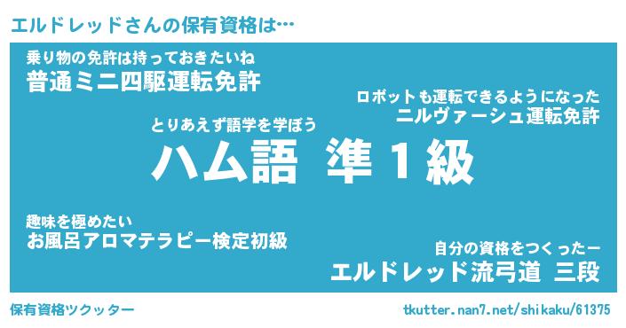 | 料理風あだ名 | 『節約★エルドレッドと油揚げの玉子丼』 |