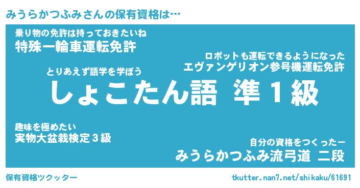 | 女子向けラノベタイトル風あだ名 | 『誰かこのみうらかつふみを説明してください! ~契約から始まるウェディング~』 |