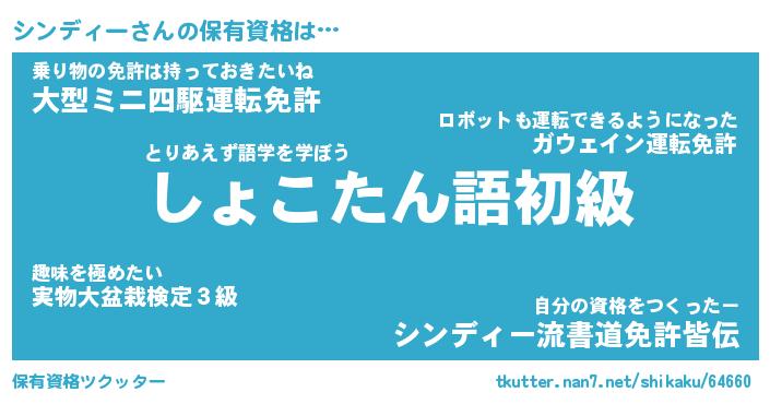 | ヒーロー風カッコイイあだ名 | 『スーパーシンディー』『炎刃騎士シン』 |