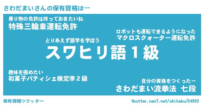 | ファンタジー風あだ名 | 『サワフェル』『エターナルサワダマイー』 |