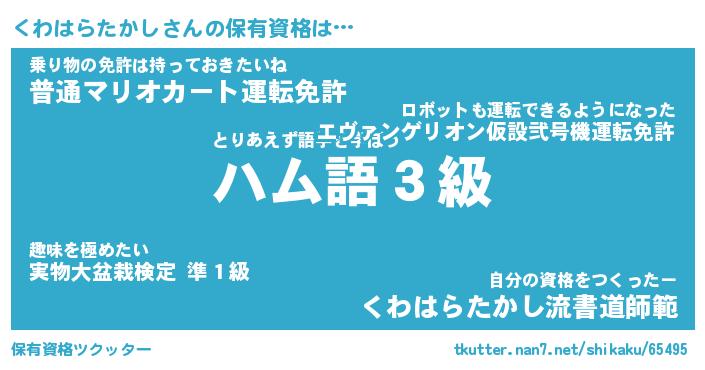| 男性向けラノベタイトル風あだ名 | 『クワハラタカシアートオンライン』 |