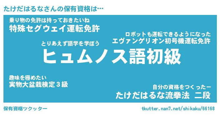 | ヒーロー風カッコイイあだ名 | 『スーパータケダハルナ』『幻影騎士タケ』 |