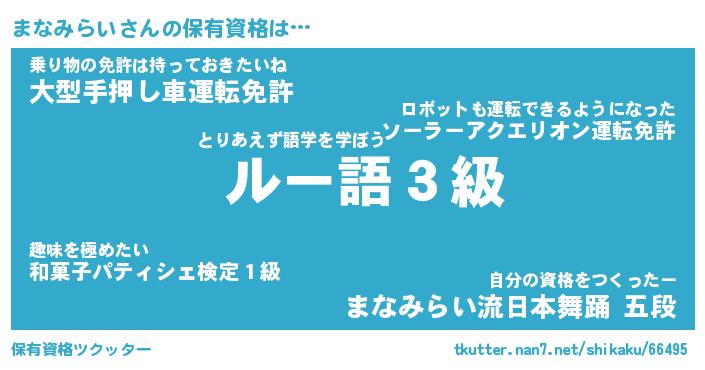 | ファンタジー風あだ名 | 『マナフェル』『エターナルマナミライー』 |
