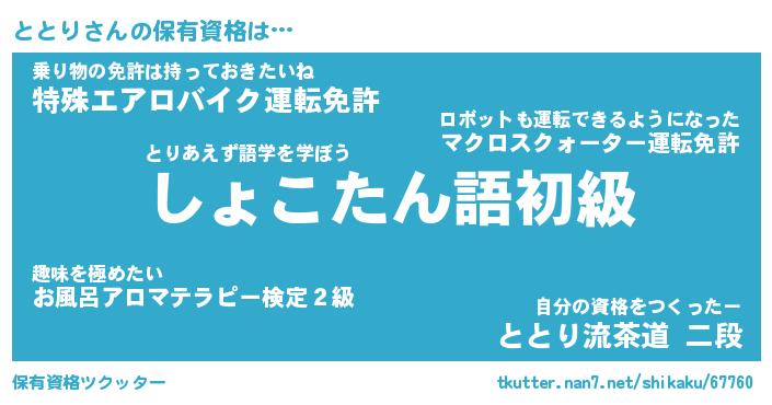 | ヒーロー風カッコイイあだ名 | 『スーパートトリ』『ウルトラととりマン』 |
