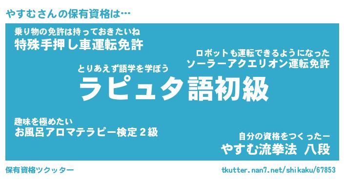 | ヒーロー風カッコイイあだ名 | 『スーパーヤスム』『ウルトラやすむマン』 |