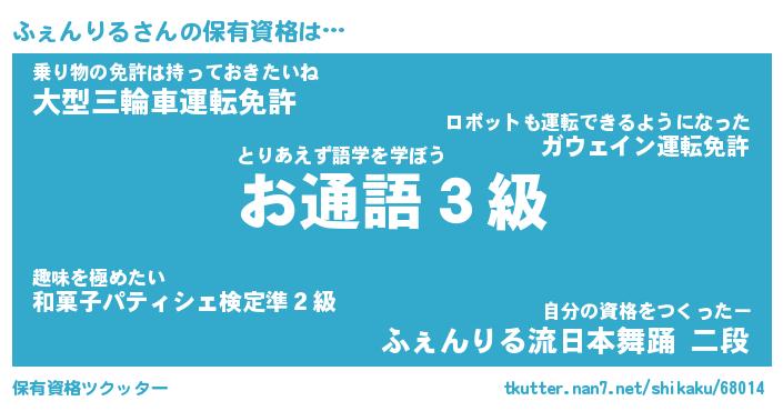 | ファンタジー風あだ名 | 『フェフェル』『エターナルフェンリルー』 |