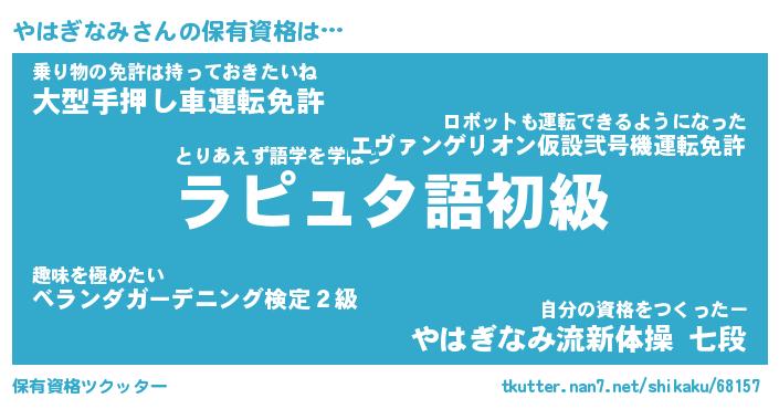 | ファンタジー風あだ名 | 『ヤハフェル』『エターナルヤハギナミー』 |