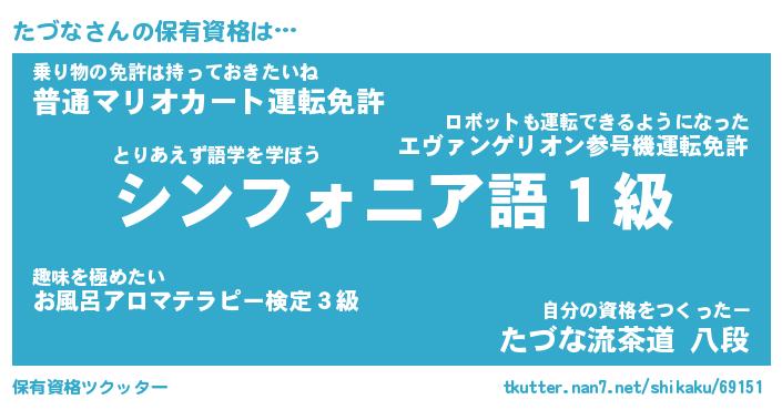 | ファンタジー風あだ名 | 『タヅフェル』『エターナルタヅナー』 |