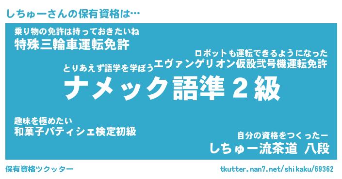 | 男性向けラノベタイトル風あだ名 | 『しちゅーの憂鬱』 |