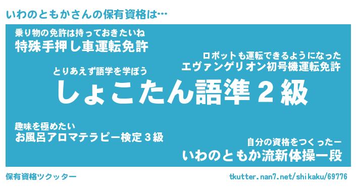 | ヒーロー風カッコイイあだ名 | 『スーパーイワノトモカ』『暗黒騎士イワ』 |