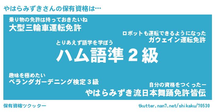 | ヒーロー風カッコイイあだ名 | 『スーパーヤハラミズキ』『魔戒騎士ヤハ』 |