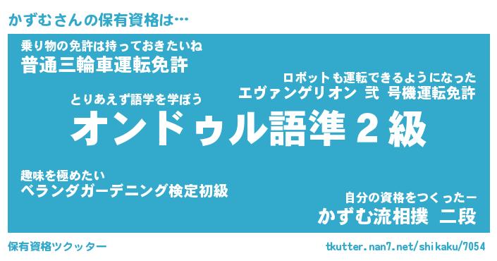 かずむさんの保有資格は… とりあえず語学を学ぼう『オンドゥル語準2級』乗り物の免許は持っておきたいね『普通三輪車運転免許』自分の資格をつくったー『かずむ流相撲 二段』 ツクッター #保有資格ツクッター http://tkutter.nan7.net/shikaku/7054/