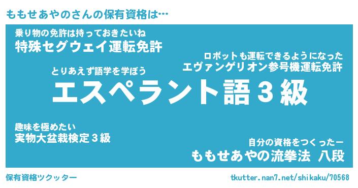 | ヒーロー風カッコイイあだ名 | 『スーパーモモセアヤノ』『銀牙騎士モモ』 |