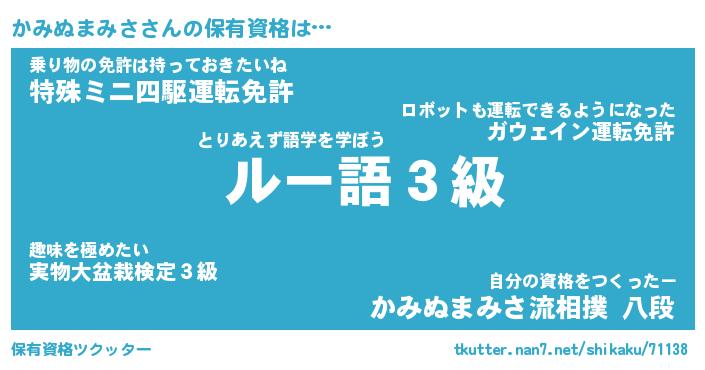 | 伝説のあだ名 | 『封印されし傭兵かみぬまみさ』 |