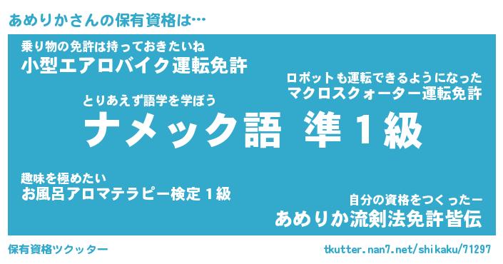 | 意味不明あだ名 | 『ペロリンあめりか』『永久保存あめりか』 |
