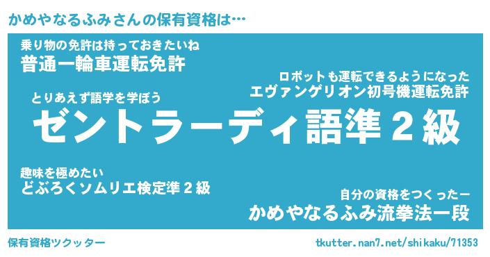 | ファンタジー風あだ名 | 『カメフェル』『ファントムカメス』 |