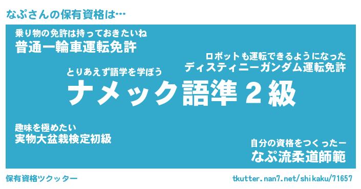 | ヘコむあだ名 | 『なぷもー』『つくし』『なぷぷりん』 |