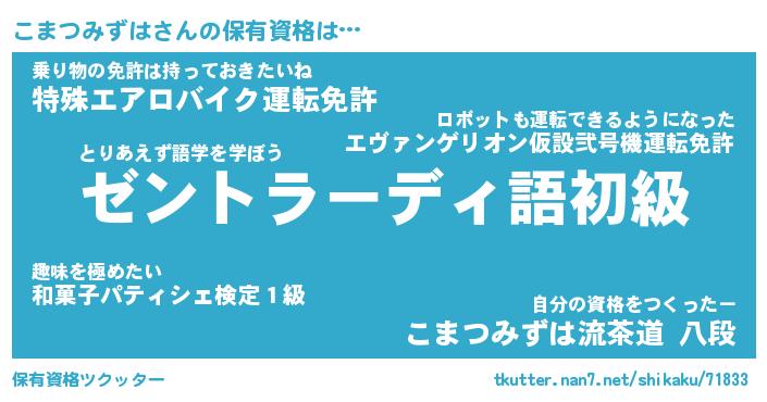 | ヒーロー風カッコイイあだ名 | 『スーパーコマツミズハ』『天弓騎士コマ』 |