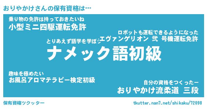 | 料理風あだ名 | 『節約★おりやかけと油揚げの玉子丼』 |