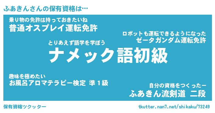 | 男性向けラノベタイトル風あだ名 | 『ふあきんの憂鬱』 |