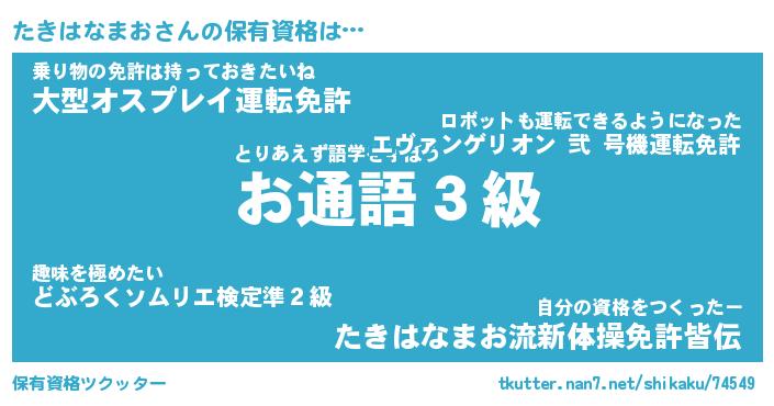 | 肩書あだ名 | 『たきはなまおCEO』『たきはなまお大統領』 |