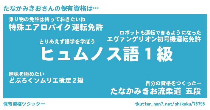 | ヒーロー風カッコイイあだ名 | 『スーパータナカミキオ』『魔戒騎士タナ』 |