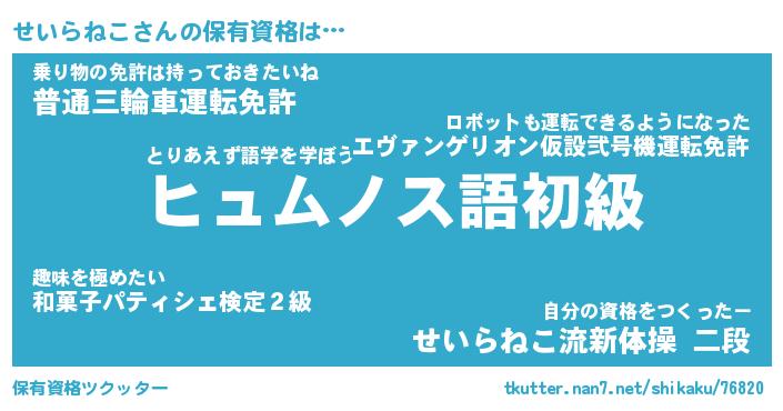 | 伝説のあだ名 | 『封印されしスナイパーせいらねこ』 |